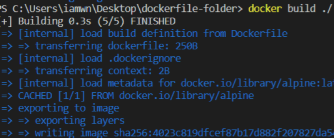 docker build ./ 명령어 실행 시, 대부분 아래 사진과 같이 이미지ID가 나오실거에요.